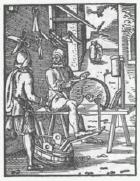 Die Schleifer saßen oder standen am rundumlaufenden Schleifstein. Kleinere wurden mit einem Fußbrett, größere durch Kurbeln angetrieben. Seit dem 14. Jahrhundert wurden Schleifsteine bis 2 Meter Durchmesser durch Wasserkraft angetrieben.